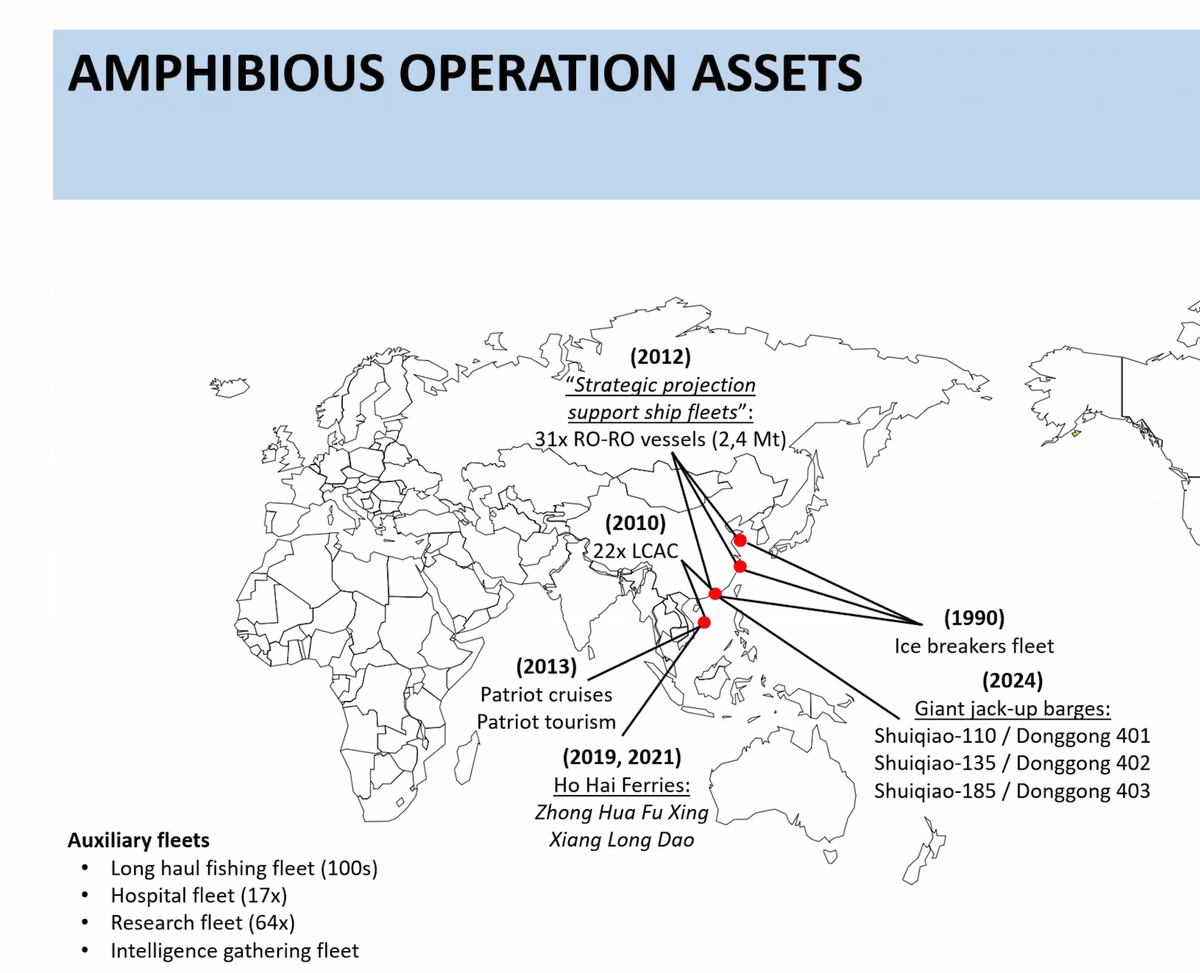 This will include their growing use of autonomous and unconventional naval assets, such as buoys, drones, floating platforms and amphibious operations and power projection assets.